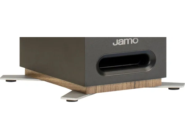 L'enceinte colonne Jamo S 809 est dotée de deux réceptacles métalliques sur le dessus reliés à son bornier Dolby Atmos et destinés à accueillir les pieds métalliques de l'enceinte Dolby Atmos Jamo S 8 ATM. Cette dernière est ainsi reliée directement à l'ampli et bien maintenue en place.