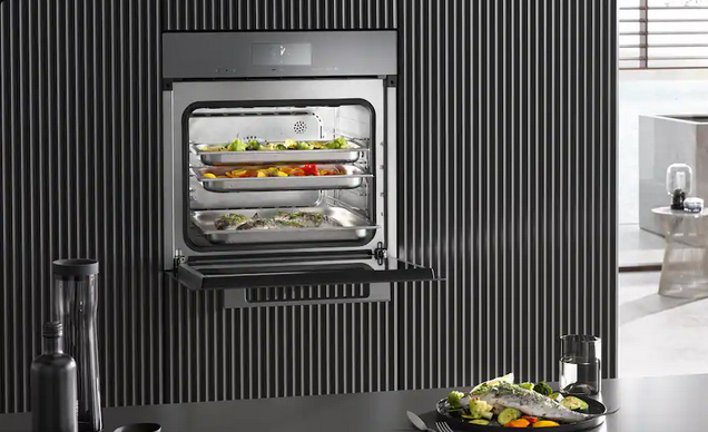 Viande, poisson, pommes de terre, légumes : avec la cuisson automatique de menu, vous pouvez cuire à la vapeur jusqu’à trois plats différents en même temps. La température, la durée et l’ordre de cuisson sont déterminés par l’appareil. Pour des résultats optimaux, placez les aliments dans le four vapeur à l’heure et dans l’ordre spécifiés pour préparer un menu complet en un seul processus, sans stress.