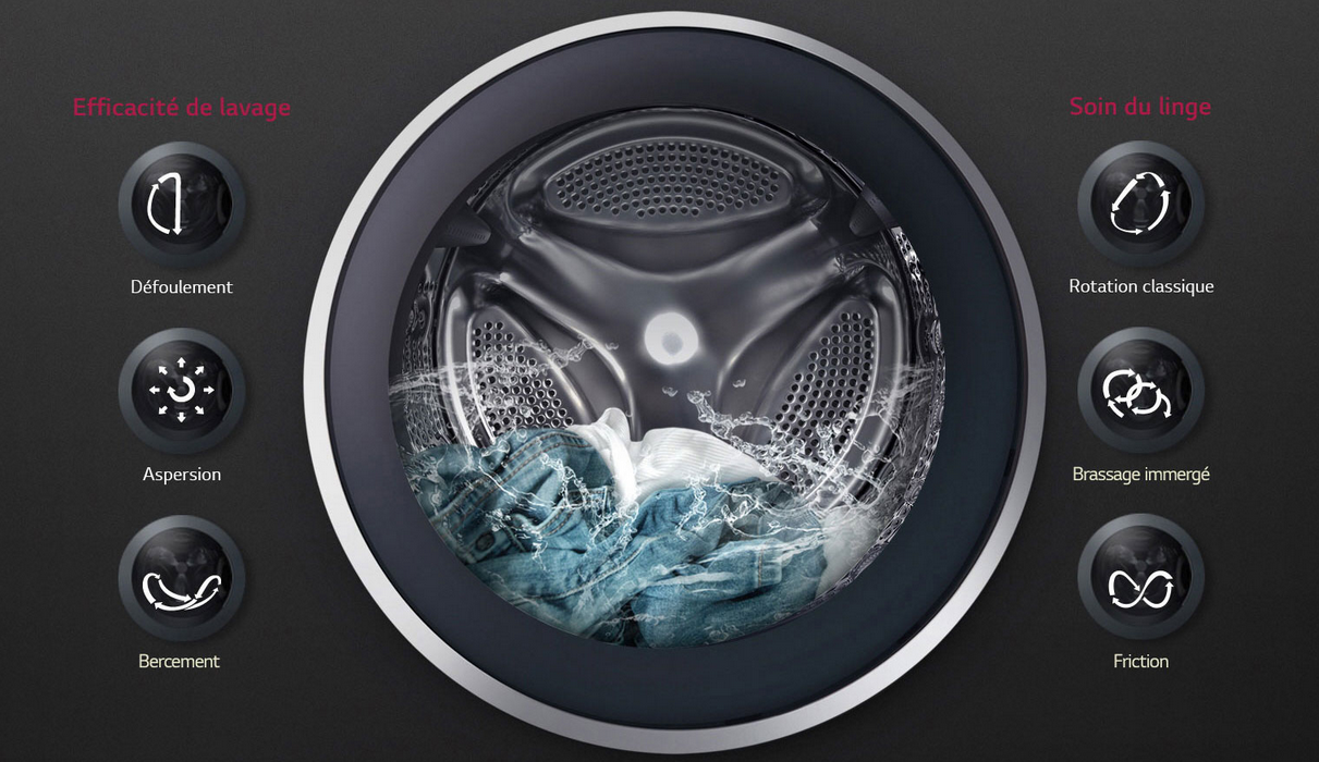 Sélectionnez un programme de lavage et la technologie 6 Motion Direct Drive™ recrée jusqu'à 6 mouvements de tambour au cours d'un même cycle de lavage pour un résultat irréprochable, adapté à tout type de tissu.