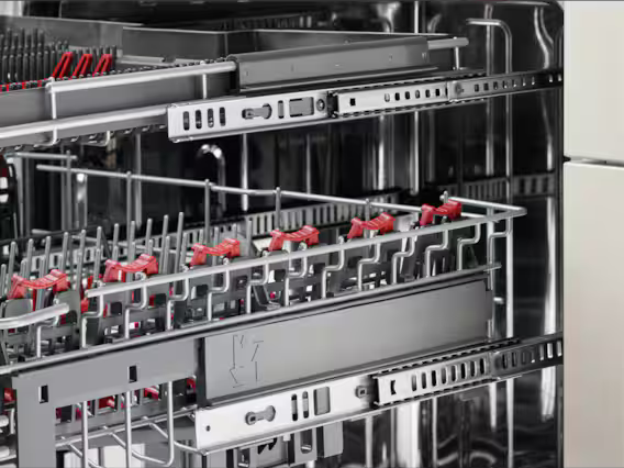 Avec les ComfortRails, faites glisser le panier en douceur sans que les plats ne s'entrechoquent. Le chargement et le déchargement se font toujours en douceur. Vous n'avez plus à vous inquiéter de voir apparaître des éclats ou des fissures sur vos plats.