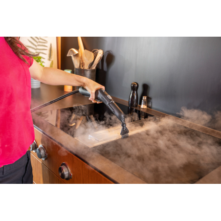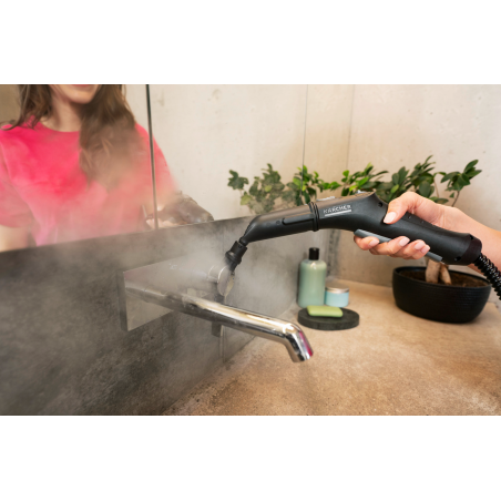 Le nettoyeur vapeur SC 4 Deluxe EasyFix nettoie avec puissance et élimine jusqu'à 99,999 % des virus* et 99,99 % de toutes les bactéries domestiques courantes** sur les surfaces dures. Le réservoir est amovible et rechargeable en permanence, ce qui garantit un nettoyage ininterrompu. Grâce au réglage de la vapeur sur trois niveaux, le débit de vapeur peut être adapté à la surface et à la saleté. La bande LED autour de l'appareil affiche l'état de fonctionnement de l'appareil. Le nettoyeur vapeur dispose d'un très grand compartiment de rangement pour ranger facilement les accessoires, les câbles et le tuyau directement sur l'appareil. La buse de sol EasyFix permet de venir à bout de toutes les salissures des sols tandis que la buse à main offre la possibilité de nettoyer en profondeur les taches tenaces sur les carreaux, les plaques de cuisson, les hottes d'aspirations, les miroirs ou les vitres. Le SC 4 Deluxe EasyFix est certifié efficace dans la lutte contre les punaises de lit par un laboratoire indépendant (Laboratoire Diagnostic Insecte, LDI) affilié à l'Institut National d'Etude et de Lutte contre la Punaise de lit (INELP).