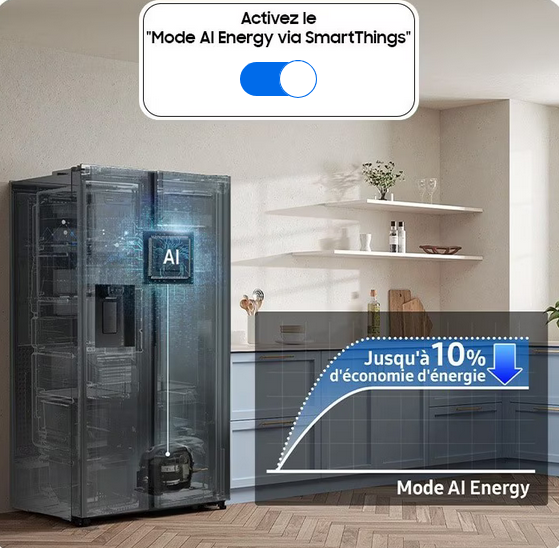 La cuisine devient intelligente avec AI Home*. Son écran tactile LCD 9” permet de gérer vos aliments, recettes, et appareils intelligents**. Il donne accès à des applications et fournit des infos personnalisées. Utilisez Bixby*** pour donner des commandes vocales et obtenir des informations.