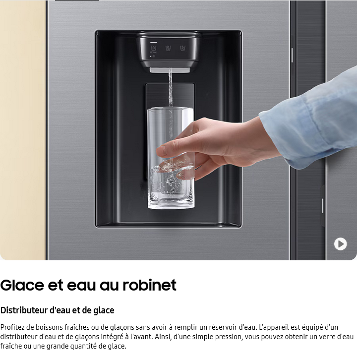 Profitez d'un moyen pratique de contrôler le réfrigérateur. Samsung Bixby* est intégré, ce qui vous permet de contrôler les paramètres, de sélectionner des fonctions et de poser des questions à l'aide de votre voix. Il communique désormais en fonction des contextes de conversation antérieurs**.