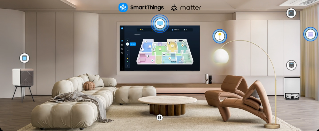 Grâce à SmartThings™, vous pouvez connecter et contrôler en toute transparence des appareils compatibles avec les normes Matter et HCA, sans avoir besoin d'un appareil supplémentaire.